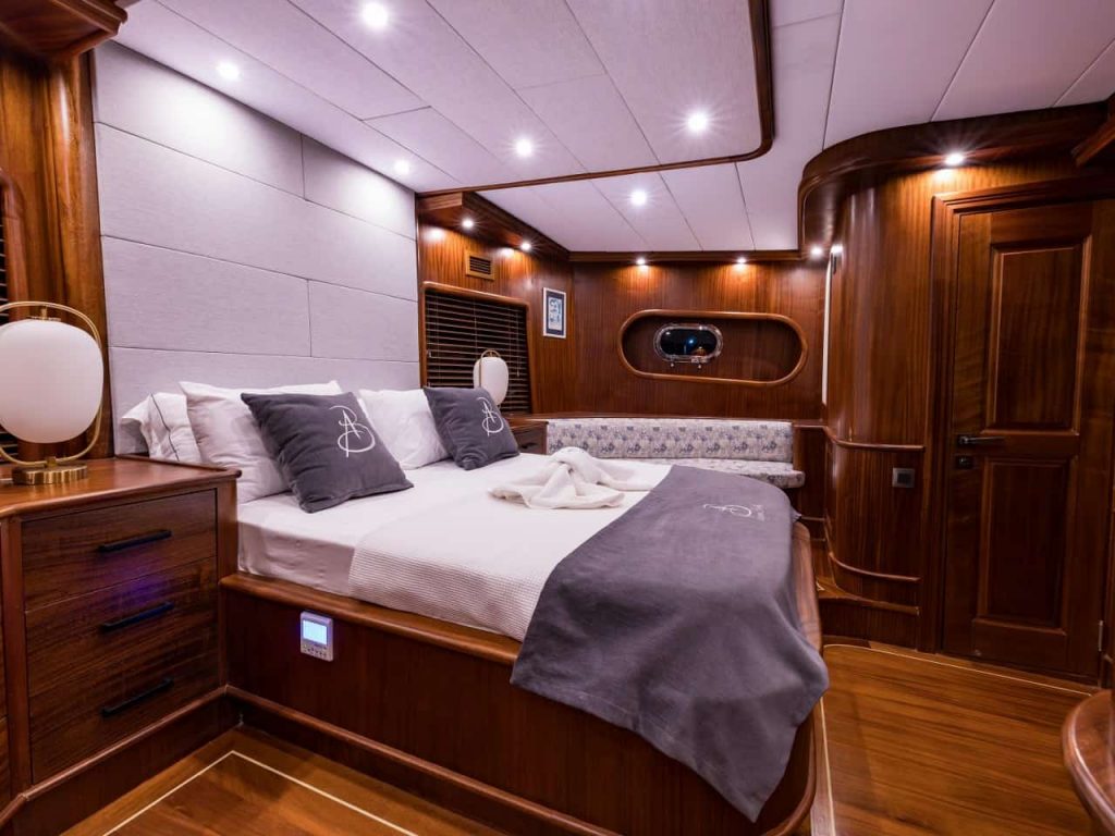 Die Aqua Bella bietet Platz für bis zu 10 Gäste und verfügt über fünf prächtige Kabinen, darunter zwei luxuriöse Master-Suiten, zwei stilvolle Doppelkabinen und eine einladende Doppelkabine. Genießen Sie das moderne Design, die üppigen Annehmlichkeiten und den persönlichen Service, die dieses unvergleichliche Kreuzfahrterlebnis ausmachen.