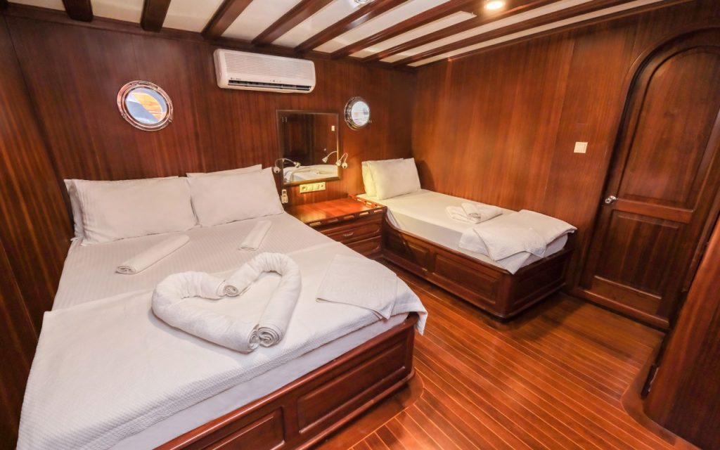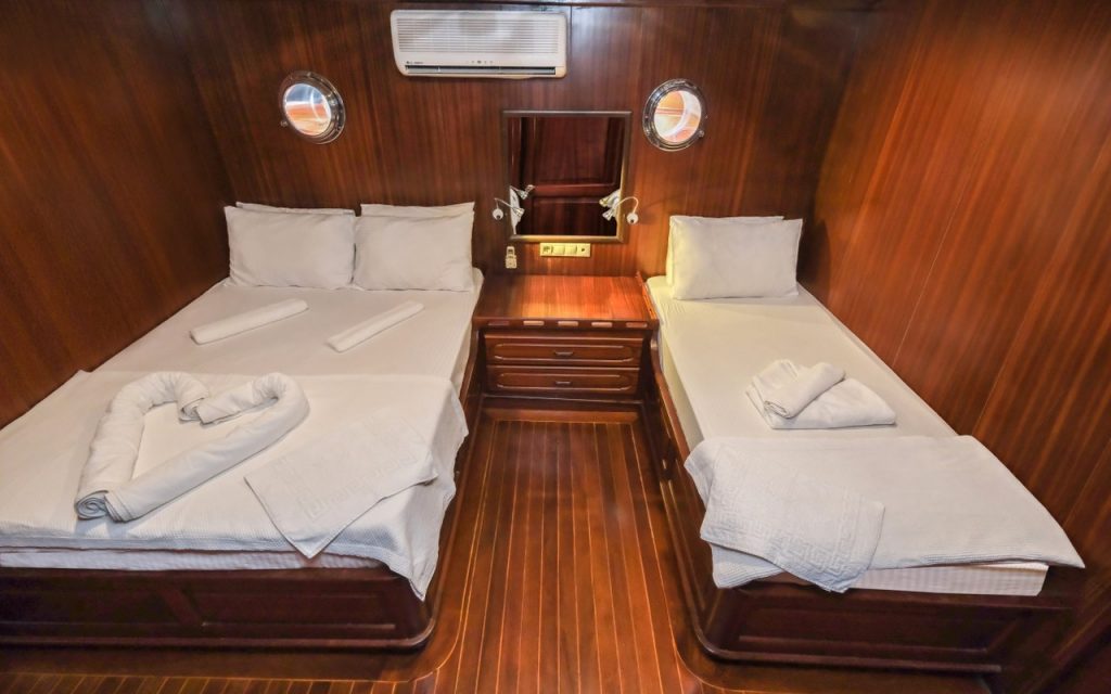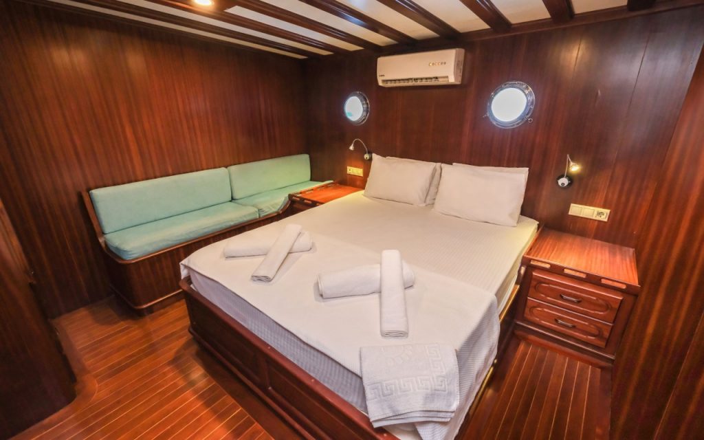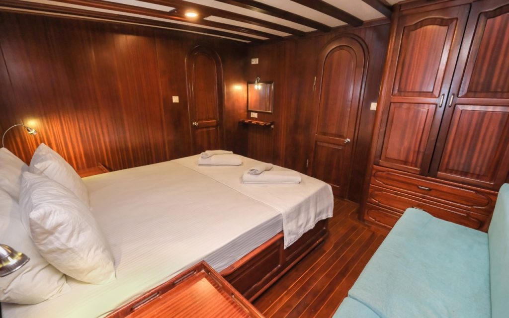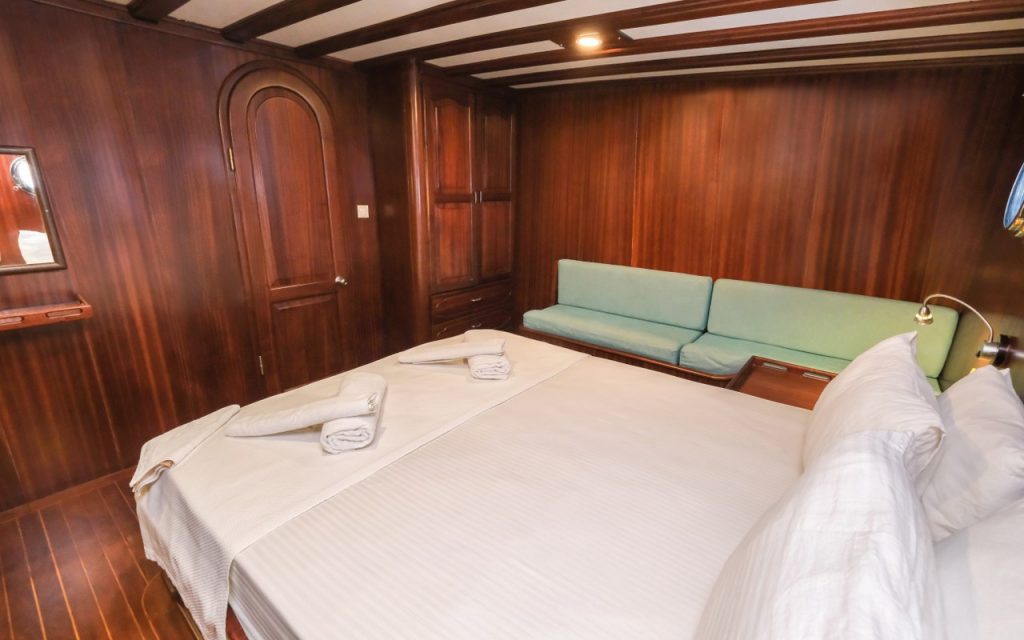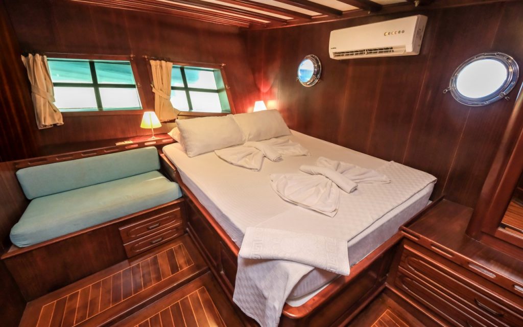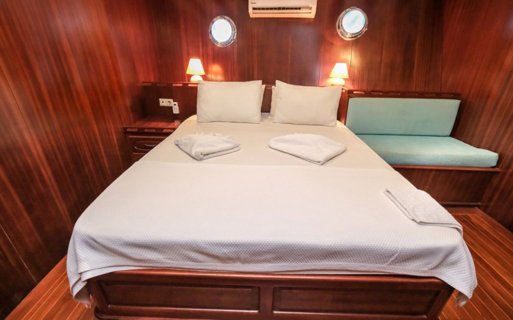 Stellen Sie sich vor, Sie wachen mit der sanften Sinfonie der Wellen auf, die gegen den Rumpf schlagen, während das Sonnenlicht durch die Bullaugen Ihrer geräumigen Kabine tanzt. Die Babaveli 7 verfügt über acht einladende Kabinen, die alle für ultimativen Komfort und Entspannung ausgelegt sind. Zwei Master-Kabinen verfügen über Kingsize-Betten und ein eigenes Bad, perfekt für eine wohlverdiente Verwöhnung.