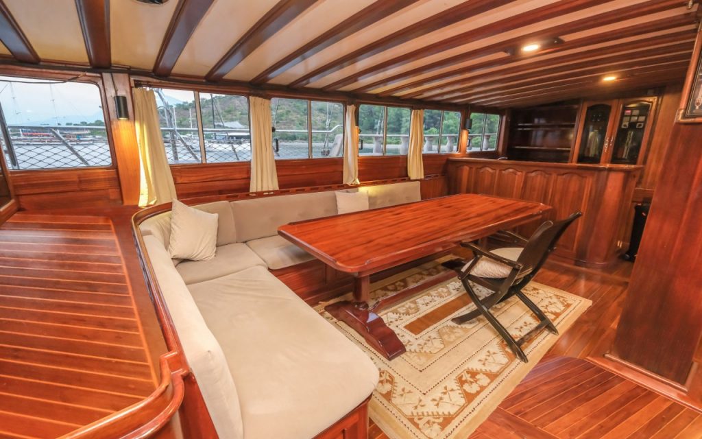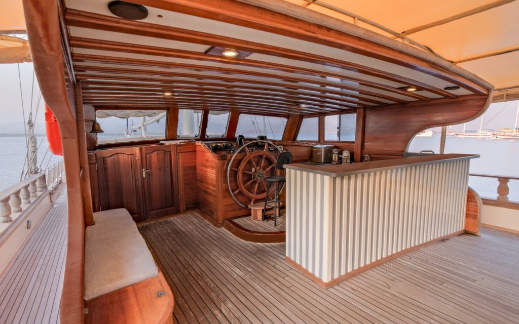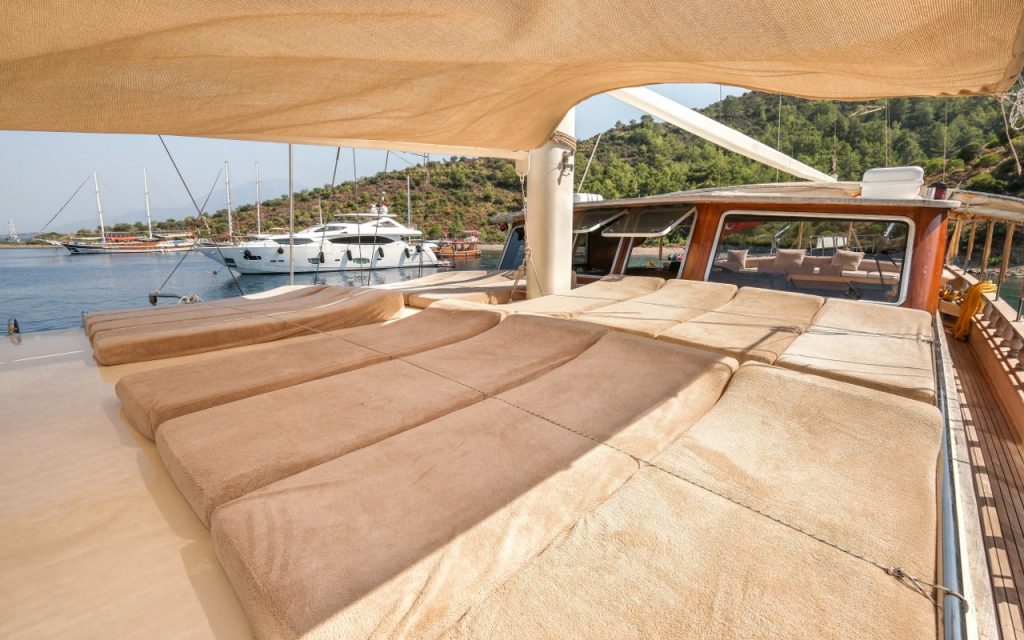 Abends können Sie sich in den gemütlichen Salon zurückziehen, der zum Entspannen und Unterhalten einlädt. Machen Sie es sich auf den Plüschsofas mit einem guten Buch gemütlich, sehen Sie sich einen Film unter dem Sternenhimmel an oder fordern Sie Ihre Freunde zu einer Partie Backgammon heraus. Die Gulet Babaveli 7 ist mehr als nur eine Charteryacht; sie ist eine Einladung, Erinnerungen zu schaffen, die ein Leben lang halten werden.
